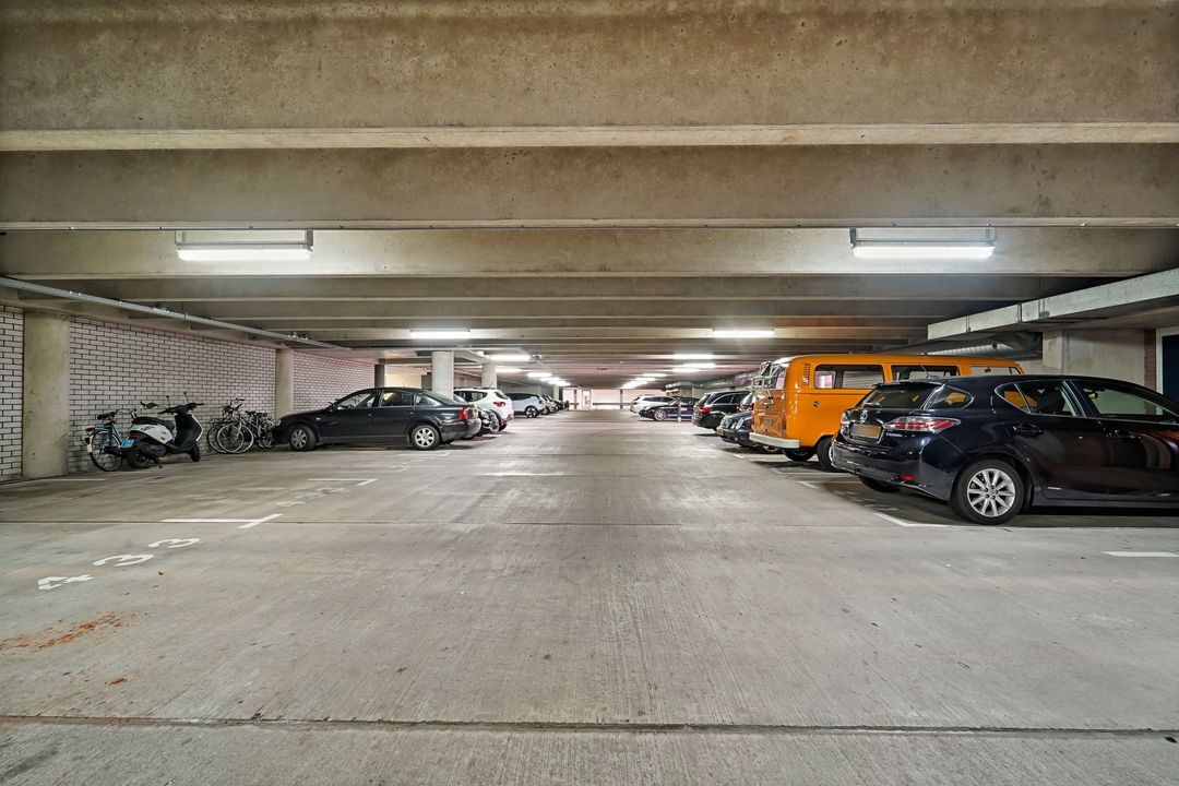 De parkeerplaats in de afgesloten parkeergarage wordt apart aangeboden voor € 35.000,= k.k. (verplichte afname).