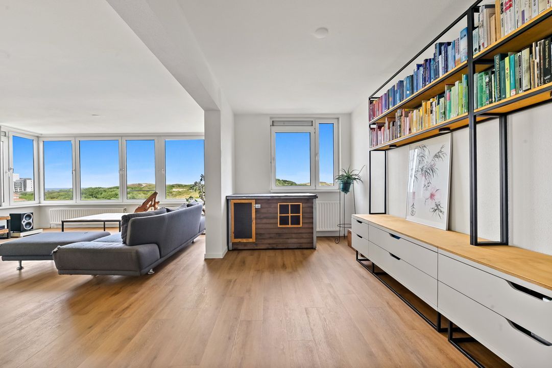 Met panoramisch uitzicht op de 3e verdieping gelegen riant en netjes onderhouden 3 kamer hoekappartement met twee ruime slaapkamers, balkon op het zuidwesten, eigen berging en parkeerplaats in de afgesloten bewonersparkeergarage. Aan de voorzijde vrij uitzicht over het beschermd natuurgebied Meijendel en zeezicht. Het appartement ligt op een paar minuten lopen van het strand aan de rand van de duinen, de winkels van het Belgisch Park, goede openbaar vervoerverbindingen en toegang uitvalswegen.