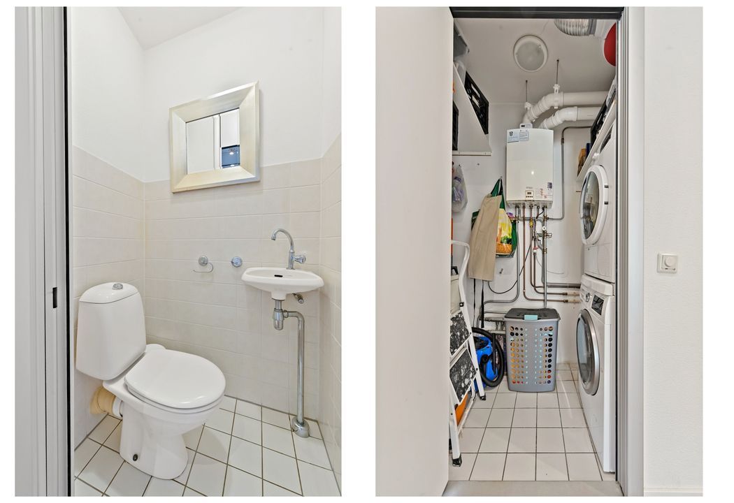 Centrale entree met bellentableau en brievenbussen. Lift naar de 3e verdieping, meterkast, entree appartement: gang met toilet met fonteintje, ruime inpandige berging met CV-combiketel (Remeha Avanta,