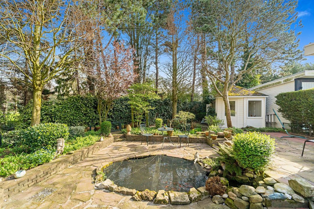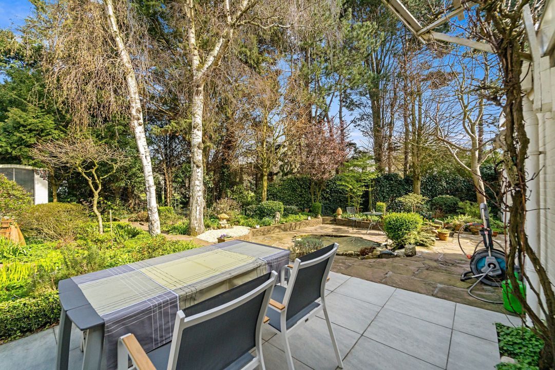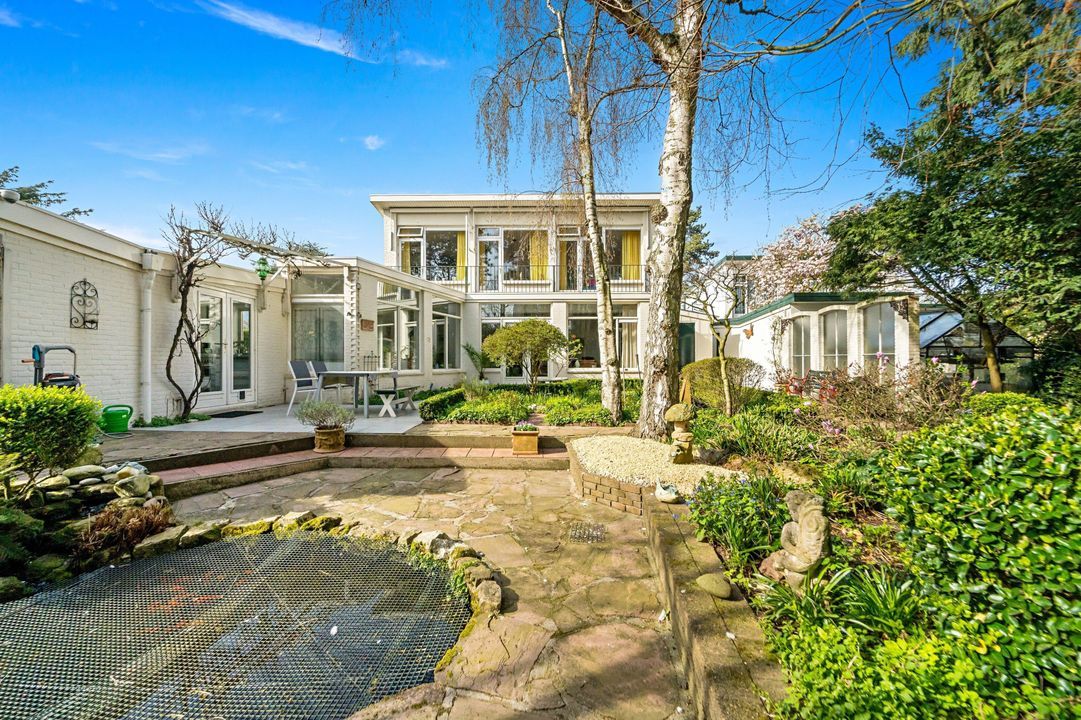 - Fraai aangelegde voor- en achtertuin met meerdere terrassen en vijver