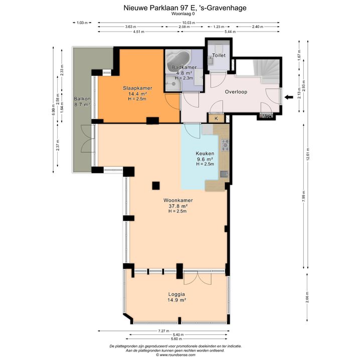 Dit appartement is gelegen op de begane grond en in het souterrain en heeft een totale oppervlakte inclusief de loggia