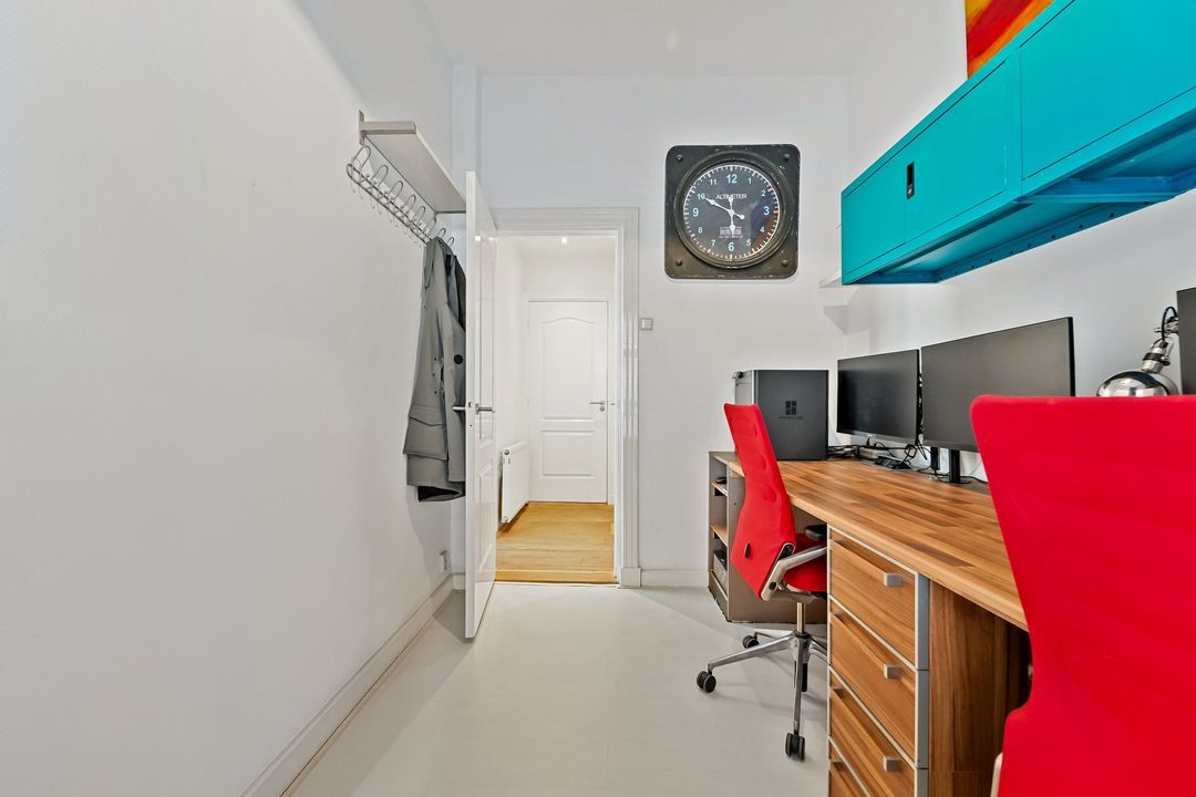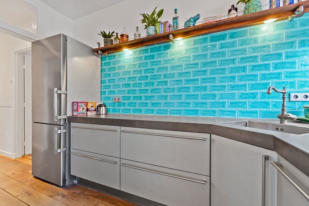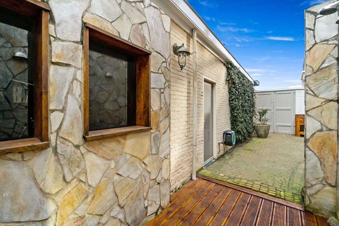 Aan de achterzijde gelegen ruime slaapkamer met toegang tot grote inloopkast (ca 4m2), tussengelegen 2e slaapkamer, riante (bijgetrokken kamer) woonkeuken (2018) voorzien van diverse inbouwapparatuur en toegang tot verzorgde zonnige achtertuin met afgeschermde buitendouche, zij-ingang (openslaande deuren) en toegang tot