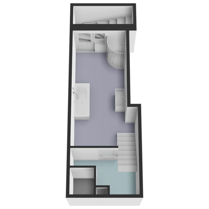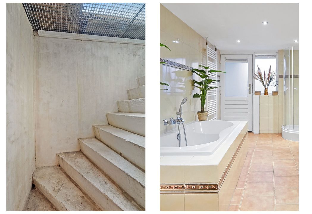 (geheel betegelde) badkamer voorzien van ligbad (duo), wastafelmeubel, douche, handdoekradiator en mechanische ventilatie, ruime afgescheiden wasruimte met opstelplaats wasmachine/droger en tevens voorzien van mechanische ventilatie en waterpomp. De badkamer heeft een kelderraam en deur met toegang tot trap omhoog naar